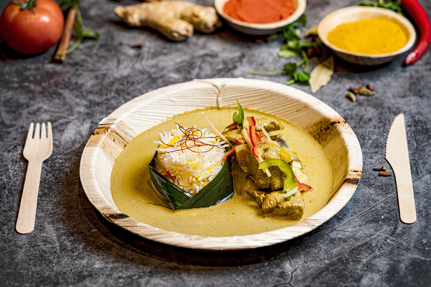 This Plate is made from Areca Palm Leaf, a sustainable, sturdy and elegant option for parties and events.