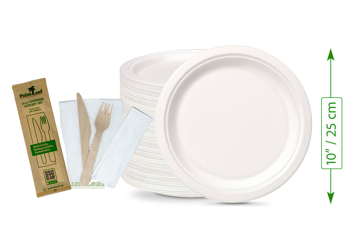 Our Eco-Friendly Bagasse Tableware Package is designed to make your special day both memorable and environmentally responsible.