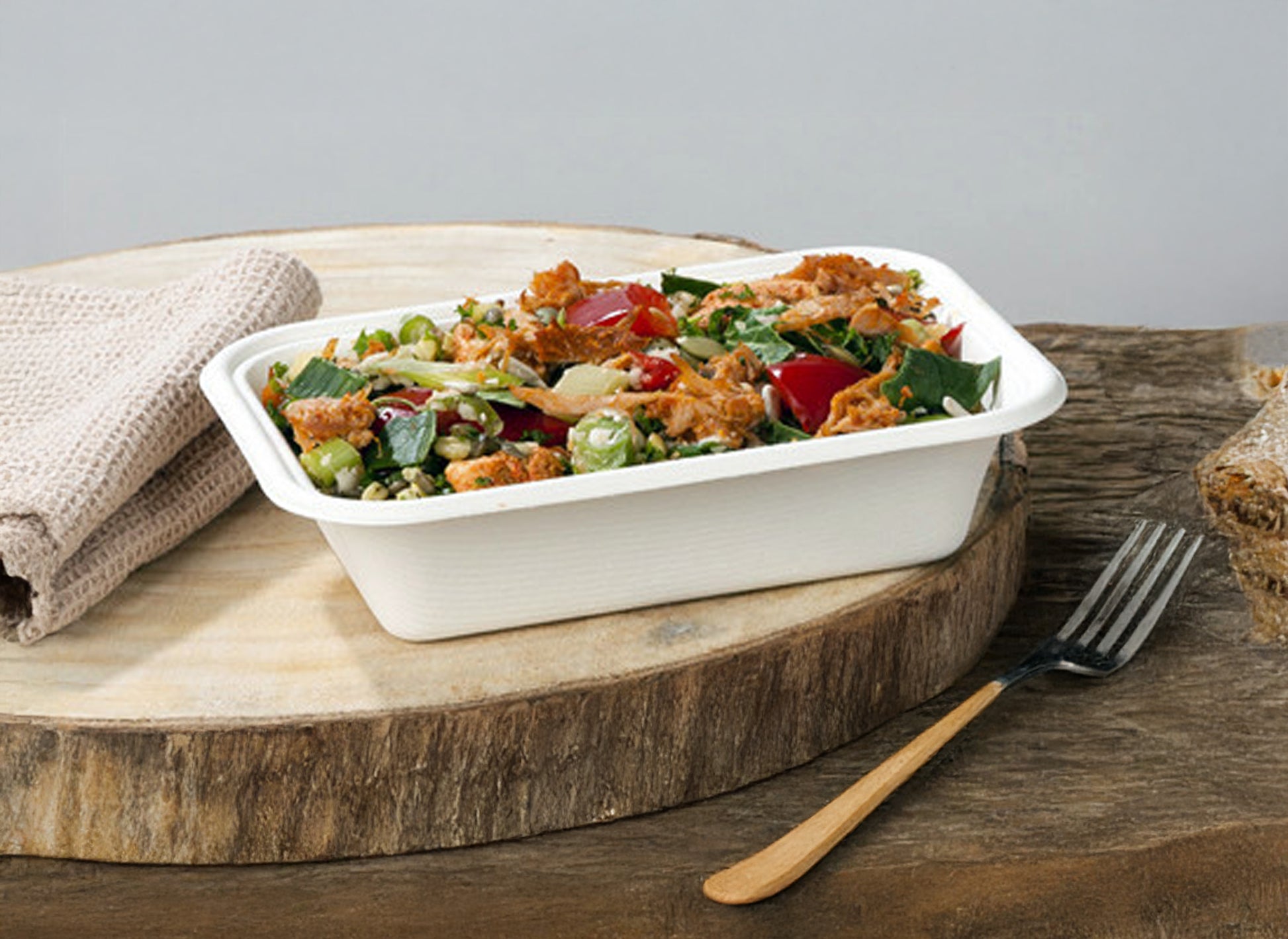This 1000ml food container is made from sugarcane bagasse fibre, a popular material for use in food packaging. Ideal for takeaways or salads, Bagasse provides good heat retention while also being leak-proof and suitable for microwave and freezer use.